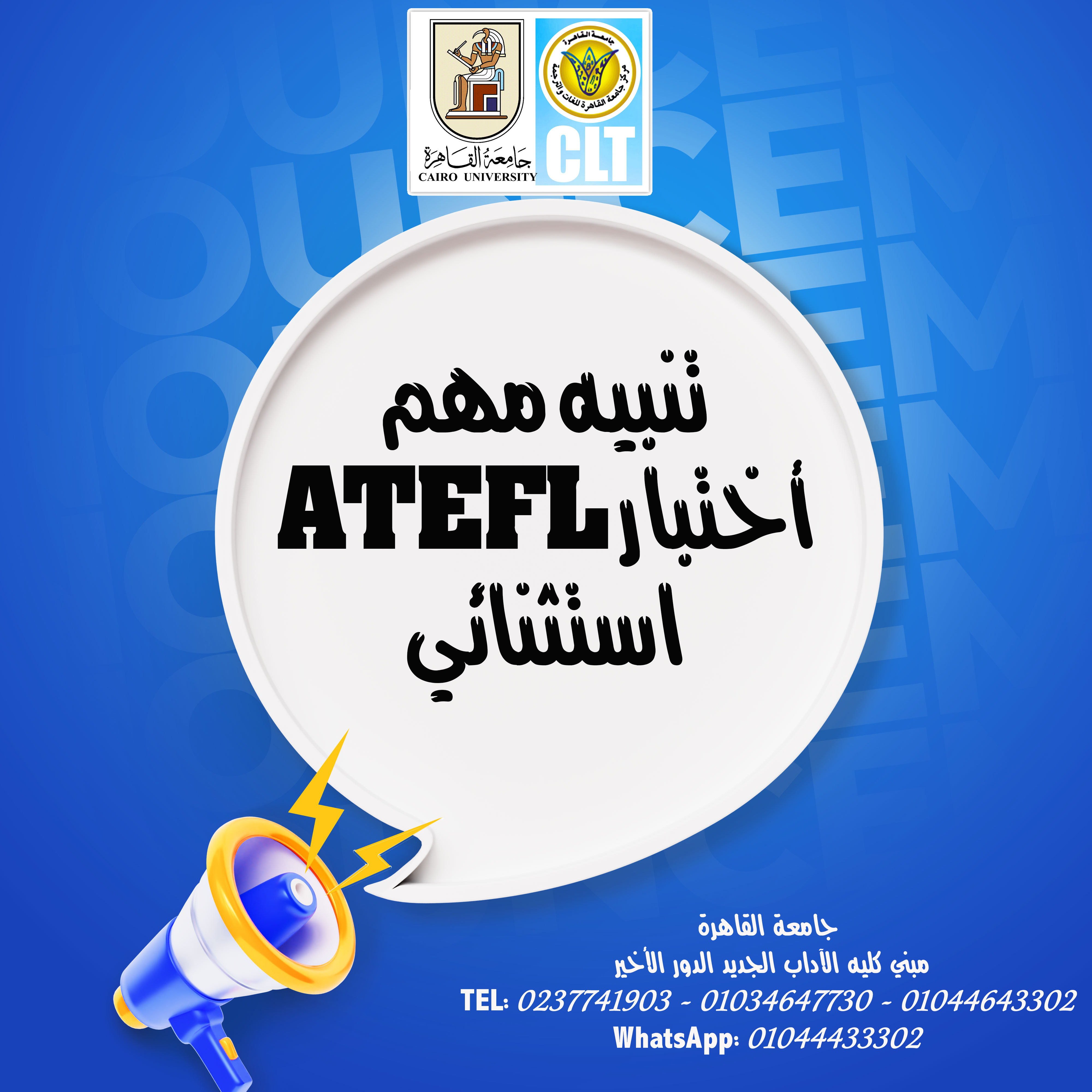 Important announcement: An exceptional ATEFL test is scheduled for June 4, 2025. Please note that transfers from other appointments to this date and vice versa are not permitted.
